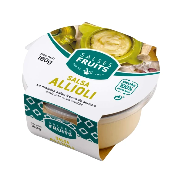 La Salsa Allioli Artesana (180 g) es un producto 100 % natural, elaborado con ingredientes sencillos y de calidad, pensado para acompañar perfectamente las carnes que forman parte de una buena calçotada, así como muchos otros platos.