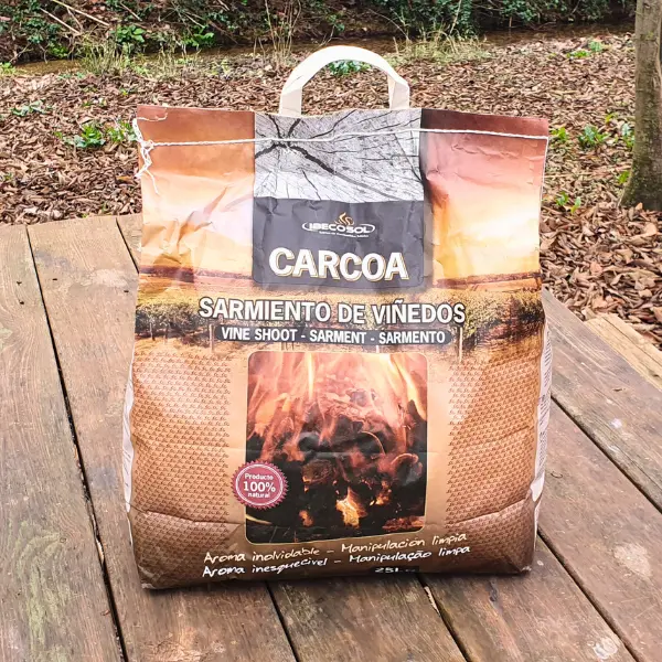 Los sarmientos de pura cepa son el combustible tradicional para preparar una calçotada auténtica y conseguir una brasa viva, intensa y limpia. Este saco de 25 litros (aprox. 4,5 kg) ofrece la cantidad ideal de sarmientos para asar calçots y carnes con un resultado excelente.